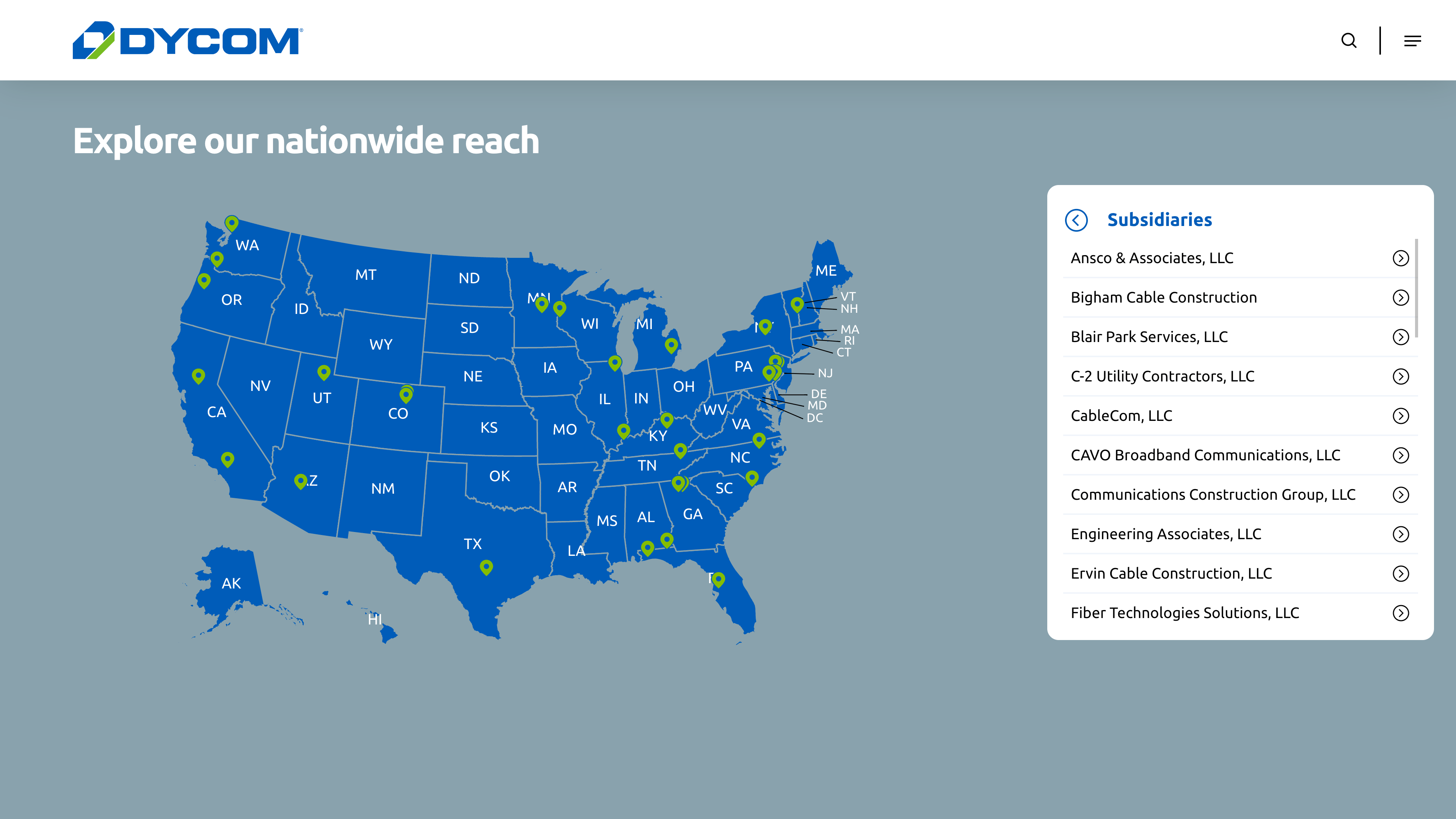 Recognizing the critical role we play in shaping the connectivity landscape, Dycom Industries approached Orpheus for a website transformation. The result is a dynamic, engaging platform that effectively communicates our extensive capabilities and commitment to delivering top-notch services. The clean, sophisticated design of the website showcases Dycom Industries’ story, highlighting our role in shaping the future of fiber infrastructure with a cohesive and visually compelling presentation.