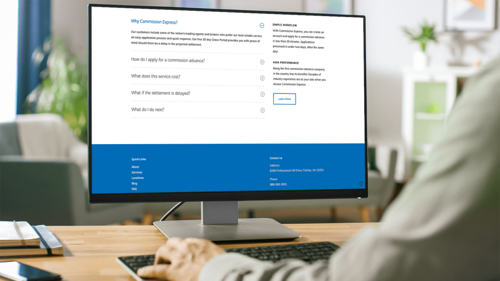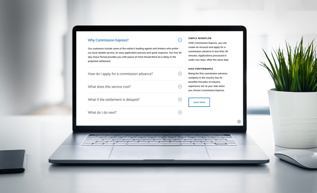 Commission Express is a franchising business with more than 45 locations nationwide that work with realtors from across the country, allowing them to access their commissions sooner. They approached Orpheus because they wanted a complete redesign of their site.